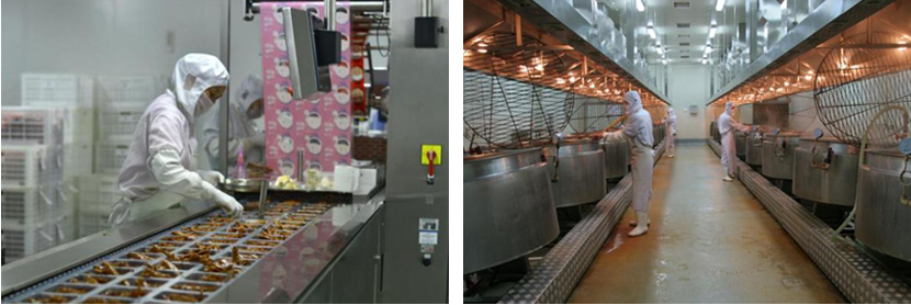 阿滿食品擁有先進的自動化生產車間,包括前處理車間、熟制車間、香腸灌制車間、油炸車間等。生產車間選自德國先進生產線打造無菌化生產車間,保證產品質量更穩定;并使用行業較為領先的糖熏爐,糖熏爐具有優異的發煙及循環系統,可使爐內的煙霧均勻分布,360度對產品進行無死角熏制,從而使肉制品著色均勻,色澤美觀,保證產品具有較高的出品率。清洗車間引進全自動刷筐機,機器通過熱堿水噴淋、熱水高壓噴淋以及自來水循環噴淋,三次清洗最大程度;降低油脂筐內殘留滋生細菌。